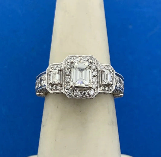 Gordon's 14k White Gold Emerald Cut Trio Diamond Engagement Ring