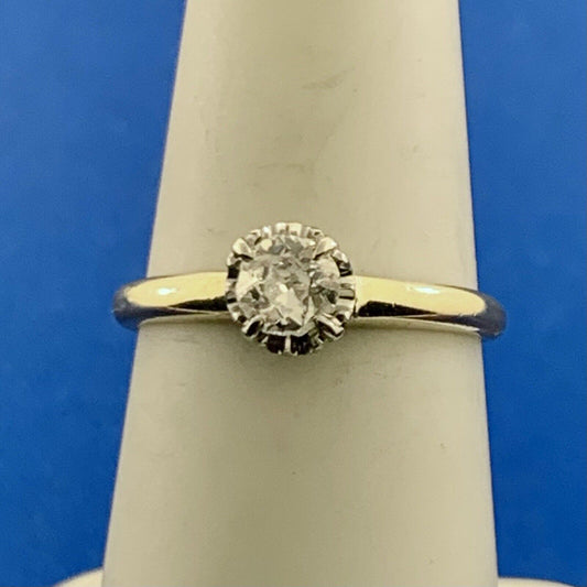 14K Yellow & White Gold Round Miner's Diamond Solitaire Engagement Ring