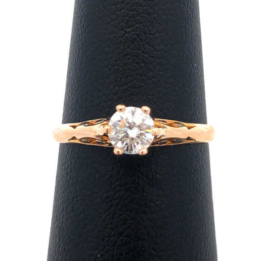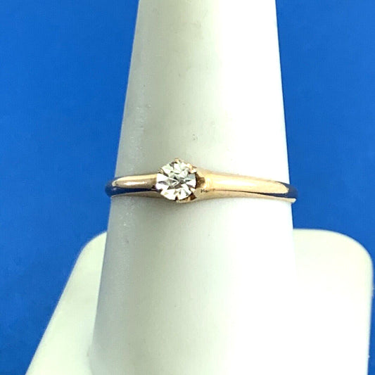 Estate Robin Hood 10K Rose Gold Cubic Zirconia Solitaire Engagement Promise Ring