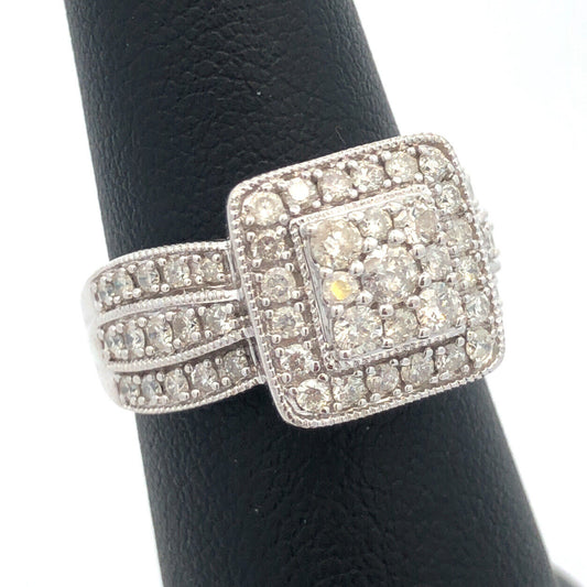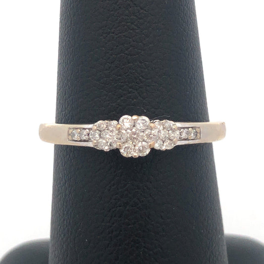Designer 10k White Gold Round Cut Diamond Promise Cluster Engagement Ring Size 7