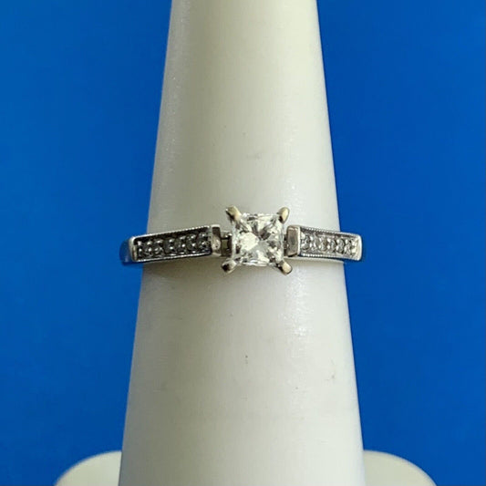 10K White Gold GSI Graded Princess Diamond Accented Engagement Ring