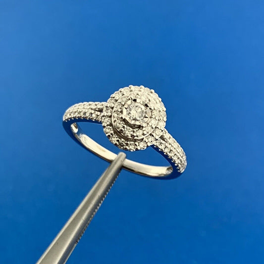 Designer 10K White Gold Diamond Double Halo Wedding Engagement Ring