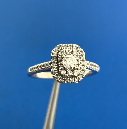 10K White Gold Diamond Solitaire Double Halo Accented Engagement Ring