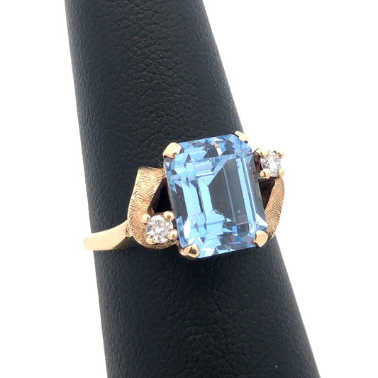 Designer 10K Yellow Gold Emerald Cut Blue Spinel Diamond Engagement Ring