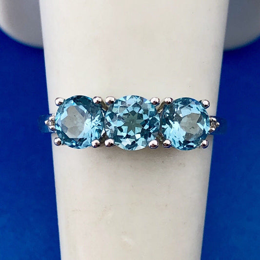 Designer 10K White Gold Blue Topaz Diamond Engagement Birthstone Cocktail Ring