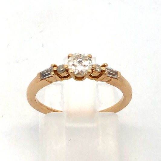 10K Yellow Gold Round Diamond Baguette Promise Engagement Ring