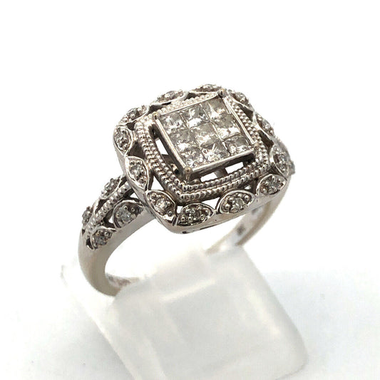 Designer JTC 14K White Gold Princess Cut Diamond Detailed Square Engagement Ring
