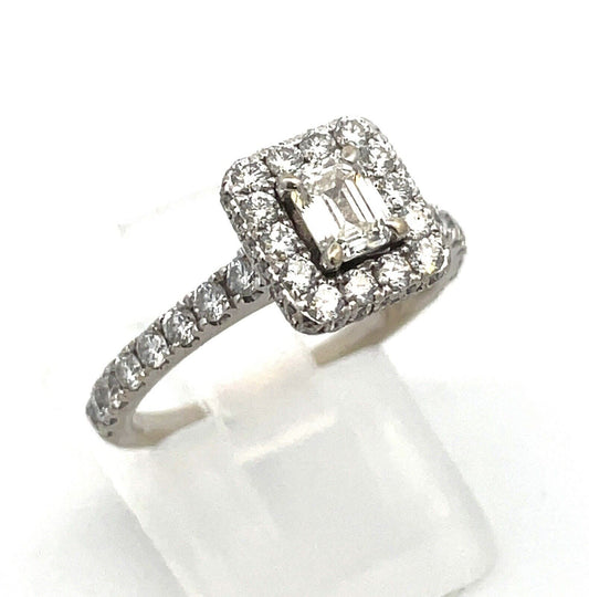 Designer Neil Lane 14K White Gold Emerald Cut Diamond Halo Engagement Ring
