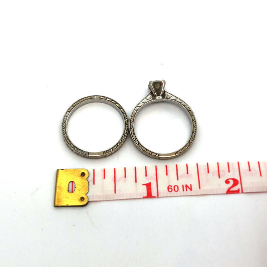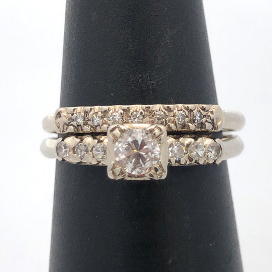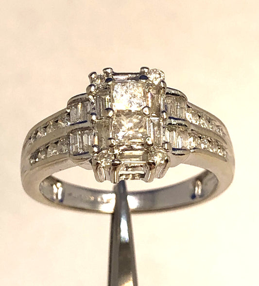Estate 14K White Gold Princess Round Baguette Diamond Engagement Ring