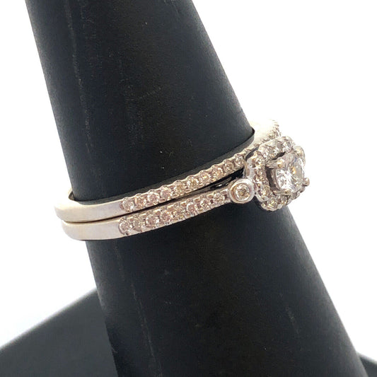 Designer FD 14KT White Gold Princess Diamond Halo Engagement Wedding Ring Set