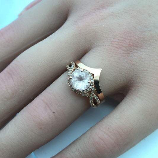 Designer 10K 14K Rose Gold Round Morganite Diamond Halo Engagement Ring Band Set