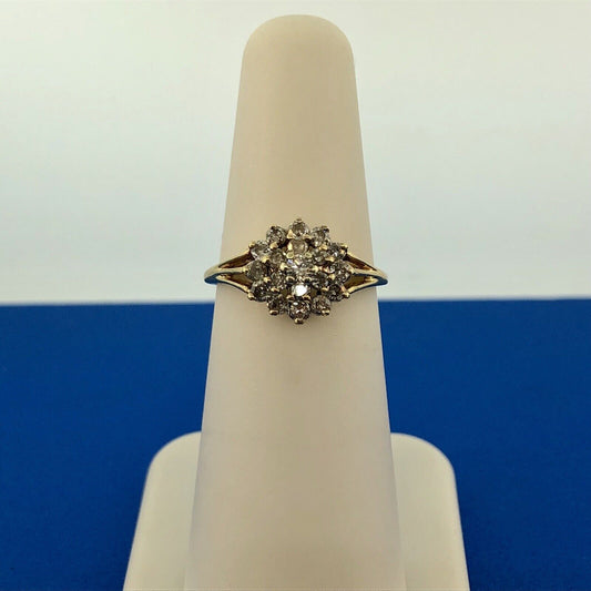 Estate 14K Yellow Gold Diamond Flower Cluster Engagement Anniversary Ring