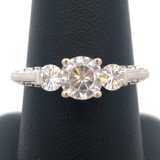 14K White Gold Three Stone Moissanite Engagement Bridal Anniversary Ring