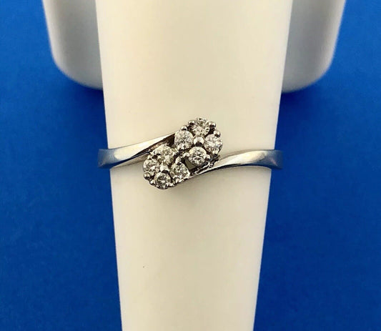 Modernist 14K White Gold Diamond Cluster Engagement Anniversary Bypass Ring