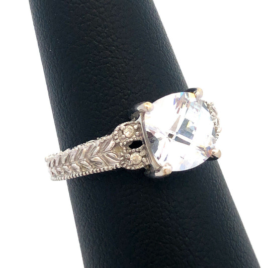 Stunning 14K White Gold Cubic Zirconia CZ Solitaire w CZ Accents Engagement Ring
