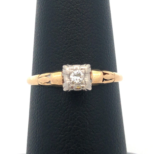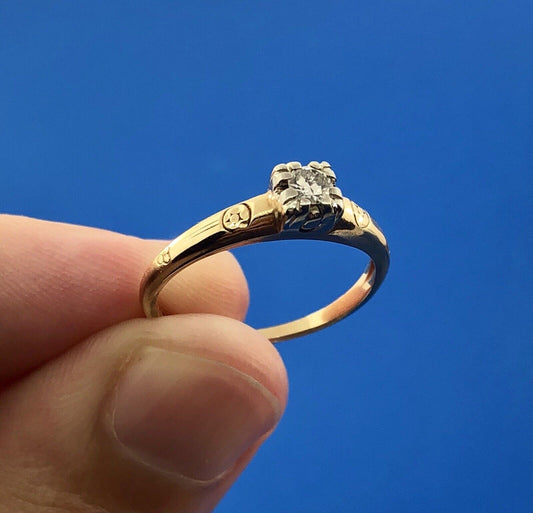 Vintage Fidelity 14K Yellow White Gold Solitaire Engagement Bridal Promise Ring