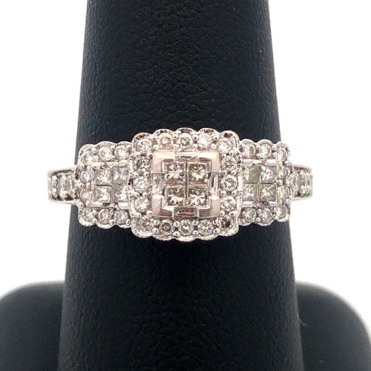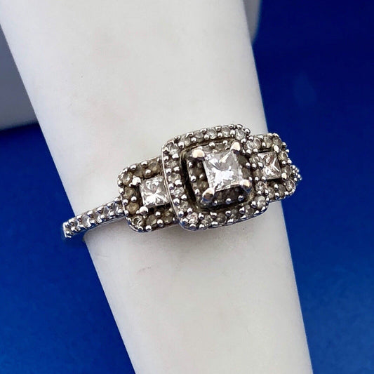 14K White Gold Princess Diamond Trio Halo Engagement Bridal Ring