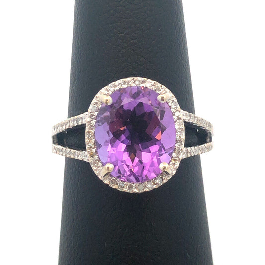 Designer 14K White Gold Oval Amethyst Diamond Halo Wedding Engagement Ring