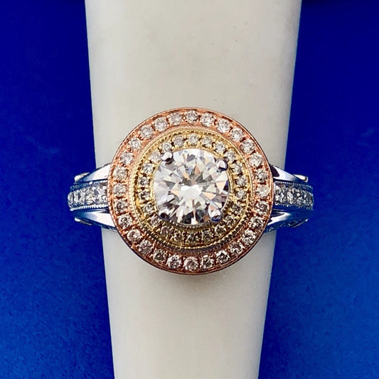 Designer 14K White Yellow Rose Gold Diamond Solitaire Halo Engagement Ring