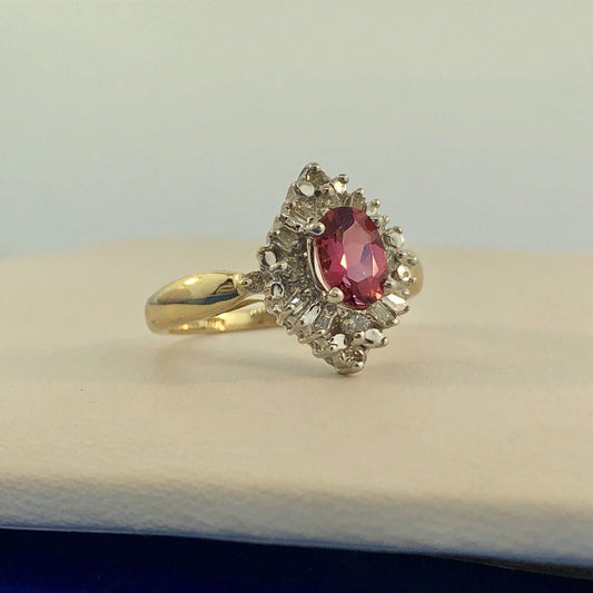 Stunning 14K Yellow White Gold Diamond Pink Tourmaline Engagement Occasion Ring
