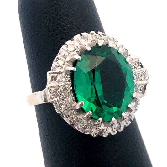 14K White Gold Green Cubic Zirconia Diamond Halo Engagement Cocktail Ring