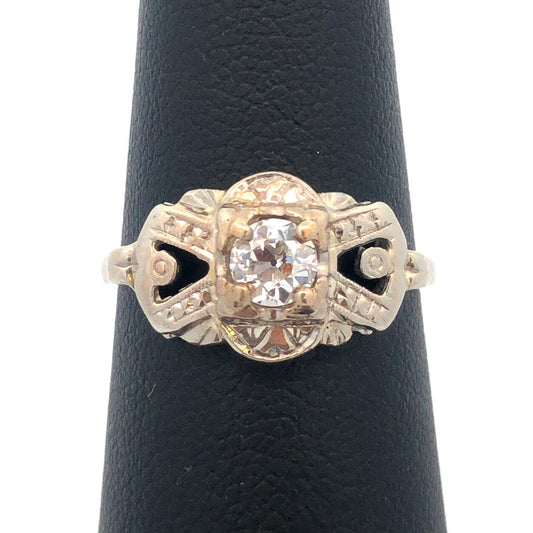 Art Deco 14K White Gold Diamond European Mine Cut Engagement Bridal Ring