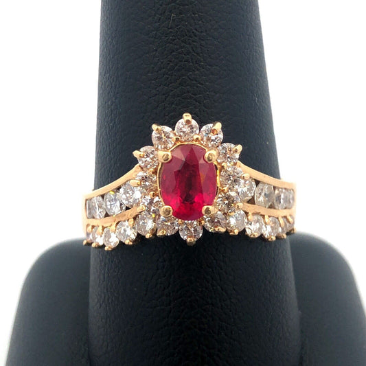 14K Yellow Gold Oval Ruby Diamond Engagement July Bday Cocktail Statement Ring
