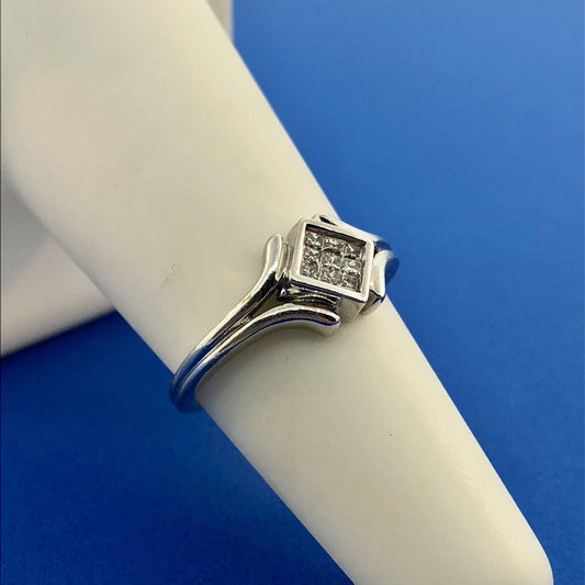 Modernist 14K White Gold Diamond Tension Set Princess Engagement Promise Ring