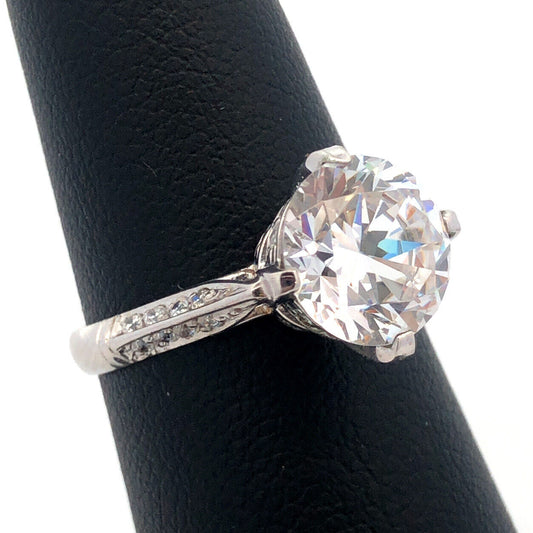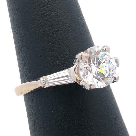 Stunning 14K White Gold Cubic Zirconia CZ Solitaire W/Accents Engagement Ring