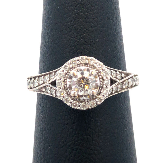 ZEI 14K White Gold Diamond Solitaire W/Halo Engagement Bridal Wedding Ring