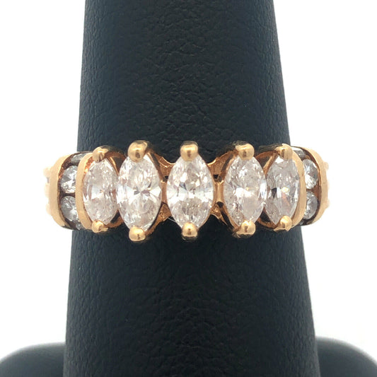 14K Yellow Gold Marquise Diamond Engagement Bridal Wedding Statement Band Ring