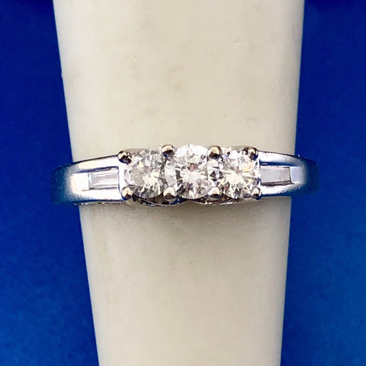 14k White Gold 3 Stone Diamond Engagement Anniversary Ring