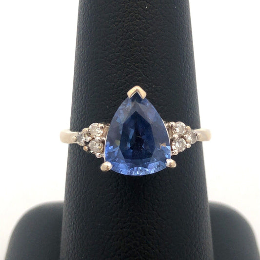 10K White Gold Blue Sapphire Diamond Engagement Anniversary Cocktail Ring