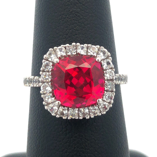 10k White Gold Lab Created Ruby Diamond Halo Engagement Anniversary Ring
