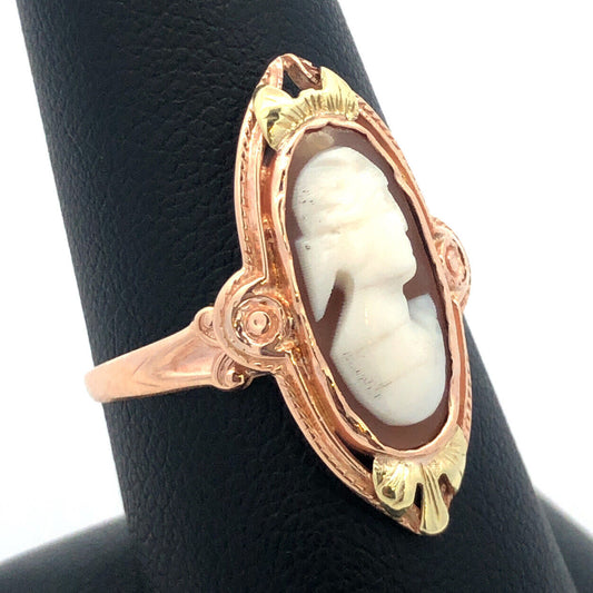 Antique 10K Yellow Gold Oval Carved Cameo Statement Cocktail Size 9 Ring
