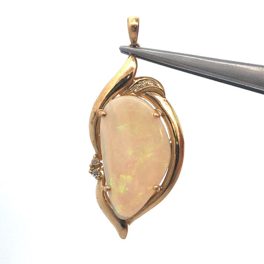 Large Australian Black Opal Pendant Solid 14k Yellow Gold with Diamond Accents