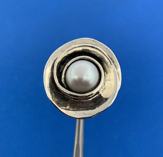 925 Sterling Silver Silpada Pearl Modernist Flower Crop Circle Statement Ring