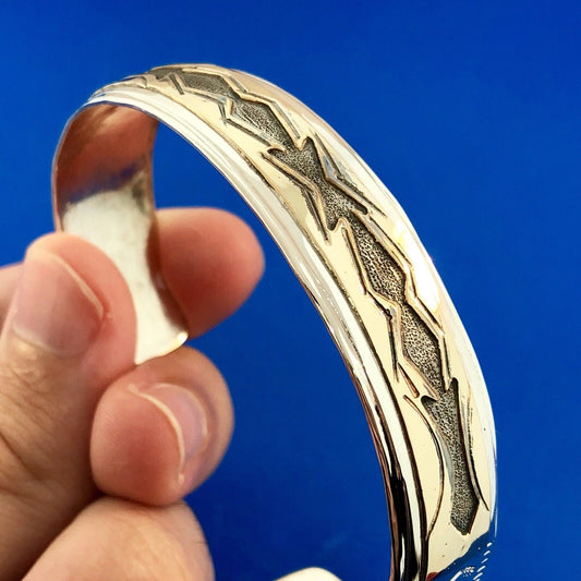 Vintage TA Begay Navajo Sterling Silver 12 Gold Filled Storyteller Cuff Bracelet
