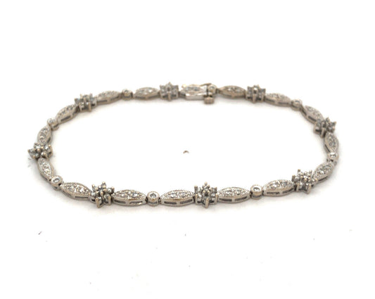 Designer 14K White Gold Round Diamond Flower Floral Textured Tennis Bracelet