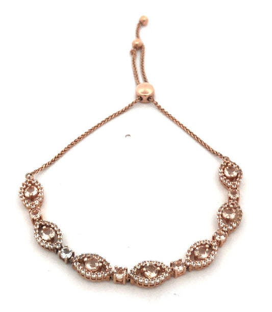 925 Sterling Silver 18K Rose Gold White Amethyst Topaz Tennis Slide Bracelet
