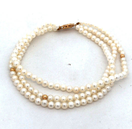 Designer 14K Yellow Gold Round White Pearl 3-Strand Beaded Bracelet