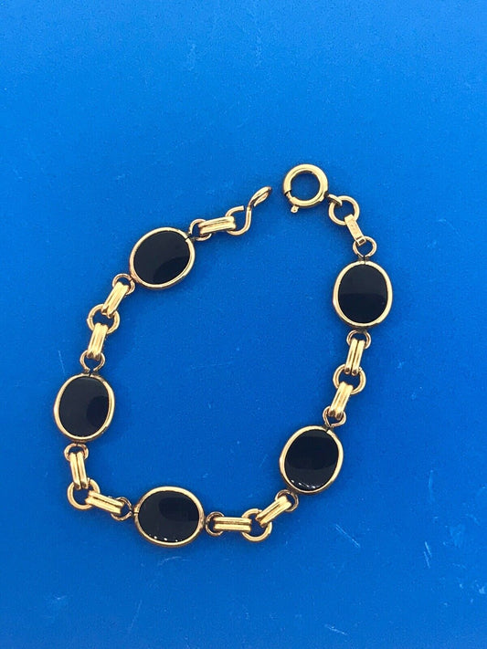 Art Deco 1/20th 12K Gold Filled Oval Black Onyx Cabochon Panel Link Bracelet