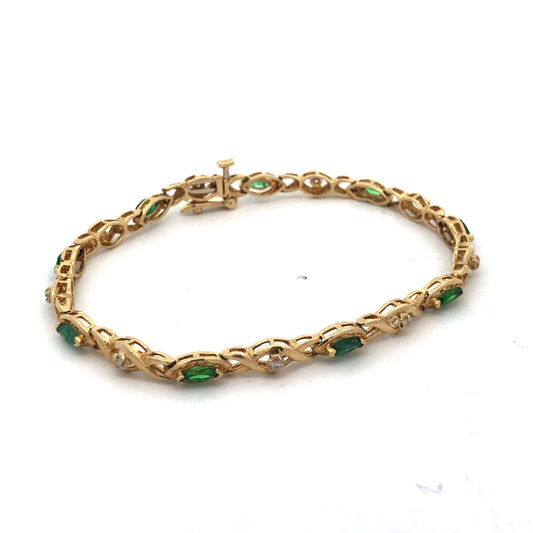 10K Yellow Gold Marquise Emerald Round Diamond X&O Tennis Bracelet