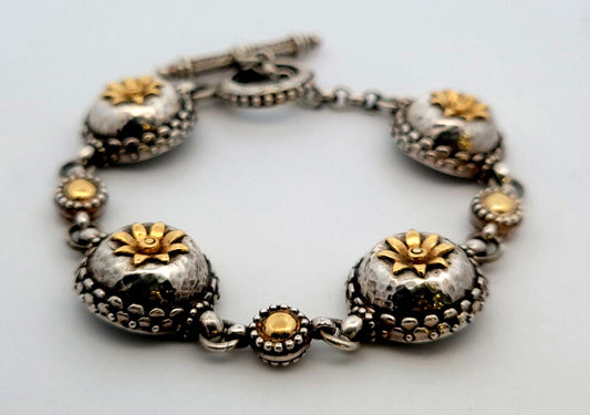 Konstantino 925 Sterling Silver 18K Yellow Gold Floral Station Chain Bracelet
