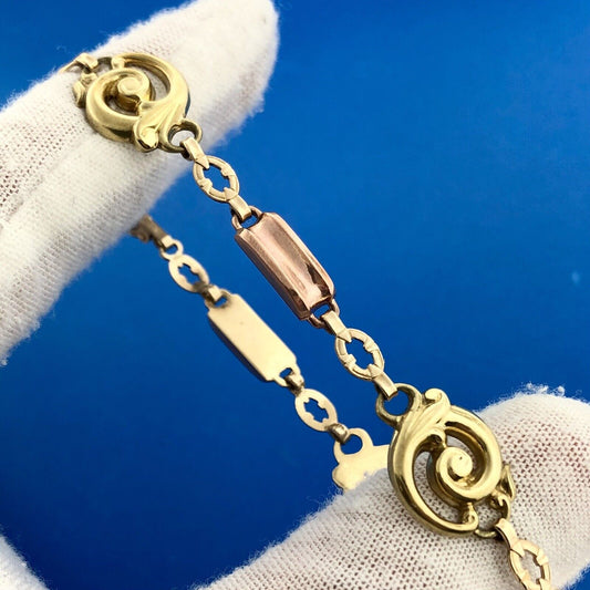 Designer ESEMco Art Deco 10K Yellow Rose Gold Floral Scroll Link Bracelet