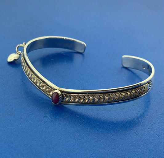 Vintage 14K Yellow Gold Round Ruby Open Scroll Hinged Cuff Bangle Bracelet
