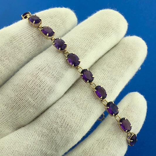 Gorgeous 10k Yellow Gold Oval Cut Purple Amethyst Diamond 6" Tennis Bracelet