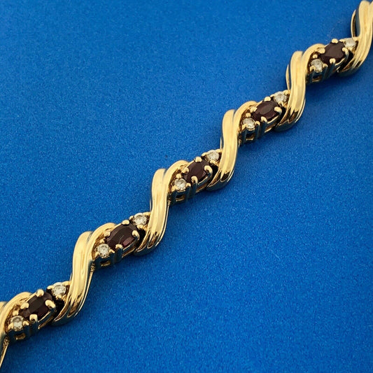 Gorgeous 14k Yellow Gold Oval Cut Ruby Diamond Accent Swirling Tennis Bracelet