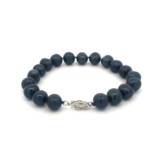 Gorgeous 14k White Gold Black Pearl 7.5" Strand String Bracelet