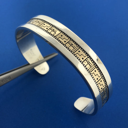 Navajo Designer Carolyn Pollack Sterling Silver 925 14K Gold Open Cuff Bracelet